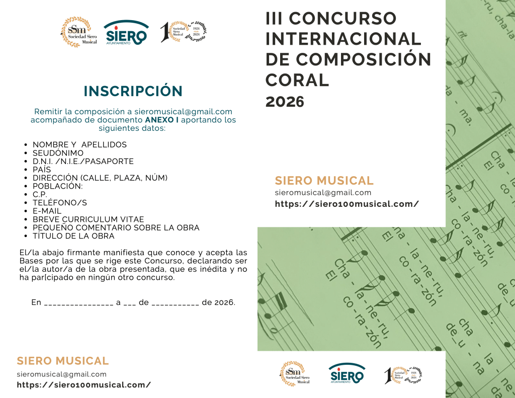 The Sociedad Siero Musical announces the III International Choral Composition Competition.