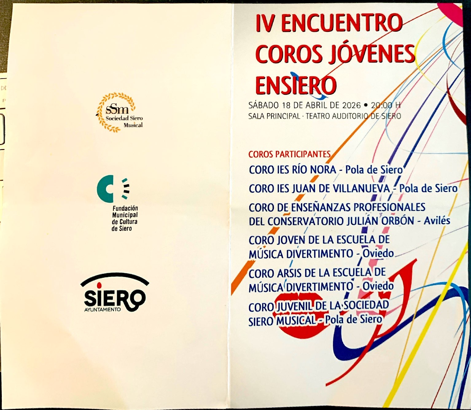 El Teatro Auditorio de Siero acogió ayer el IV Encuentro de Coros Jóvenes ENSIERO, una cita ya consolidada que volvió a demostrar el gran nivel y la vitalidad del canto coral entre los más jóvenes.