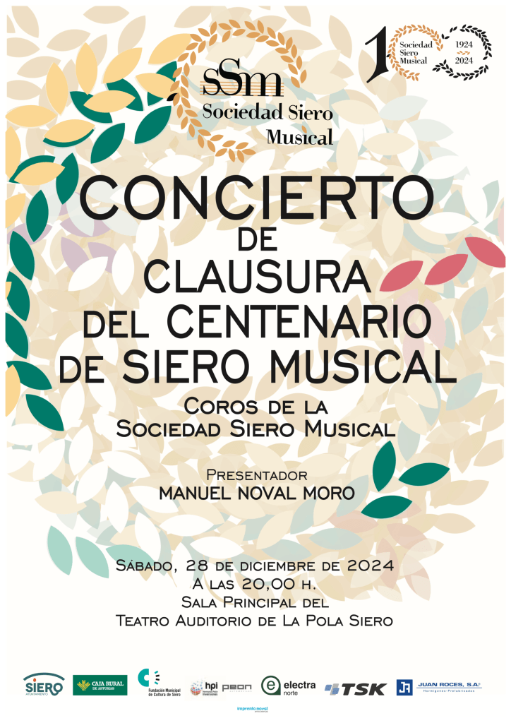 Con esta presentación, nos acercamos al cierre de las actividades organizadas con motivo del Centenario de Siero Musical, quedando pendiente únicamente el esperado concierto conmemorativo, del que próximamente ofreceremos más detalles.