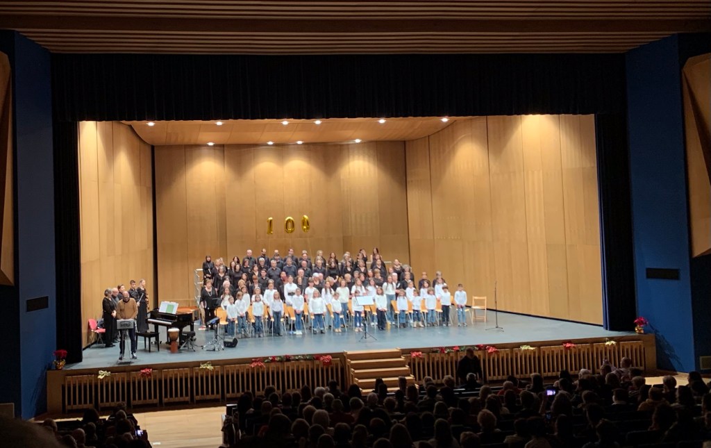 El concierto culminó con la interpretación de dos obras especialmente significativas. Por un lado, tuvimos el honor de estrenar mundialmente “Flor de otoño”, una obra para coro mixto, violín y piano compuesta especialmente para esta ocasión por el compositor argentino Pablo D. Roberto; fue interpretada por el Coro Ángel Émbil. Por otro lado, todos los coros se unieron en una interpretación conjunta de “FreedomTrilogy”, de Paul Halley.