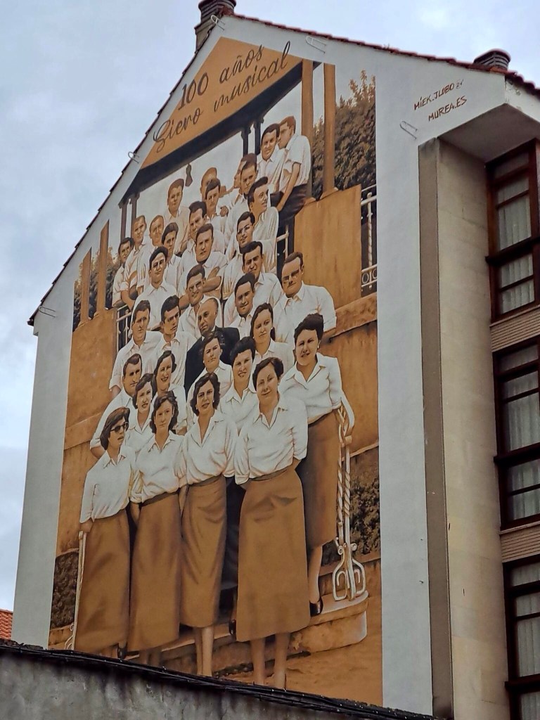 El mural representa a una formación del coro de Siero Musical de los años 1957-1958.