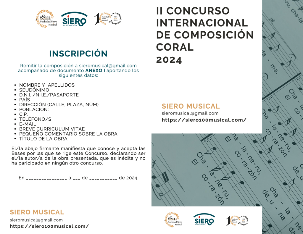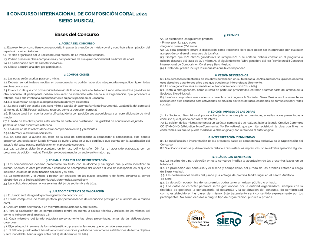El próximo sábado 5 de octubre presentaremos oficialmente la edición de las dos obras ganadoras y las seis finalistas del I Concurso Internacional de Composición Coral Siero Musical.