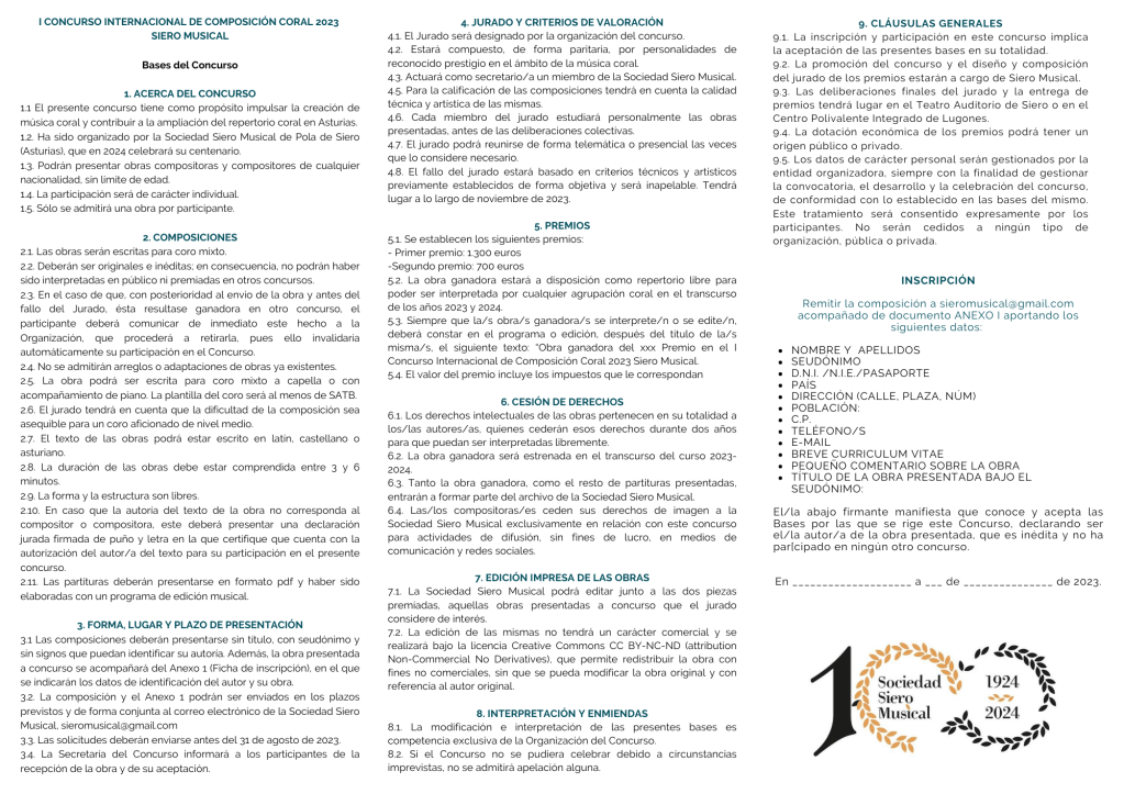 El pasado 3 de enero tuvo lugar la reunión del jurado del I Concurso Internacional de Composición de Siero Musical, formado por Eva Ugalde Álvarez, Junkal Guerrero Lángara y José Ramón Gil Tárrega. En esa reunión decidieron, por unanimidad, otorgar los siguientes premios: