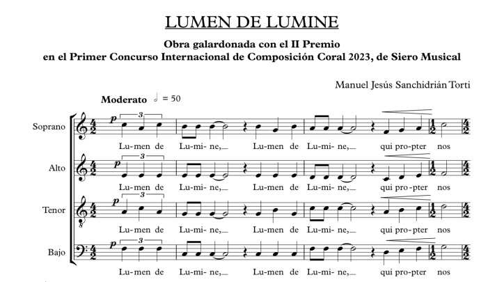 La obra ganadora lleva por título Del antiguo camino a lo largo, y su autor es el argentino Pablo Damián Roberto y la obra titulada Lumen de lumini, del malagueño Manuel Jesús Sanchidrián Torti, es la que ha conseguido el segundo premio.